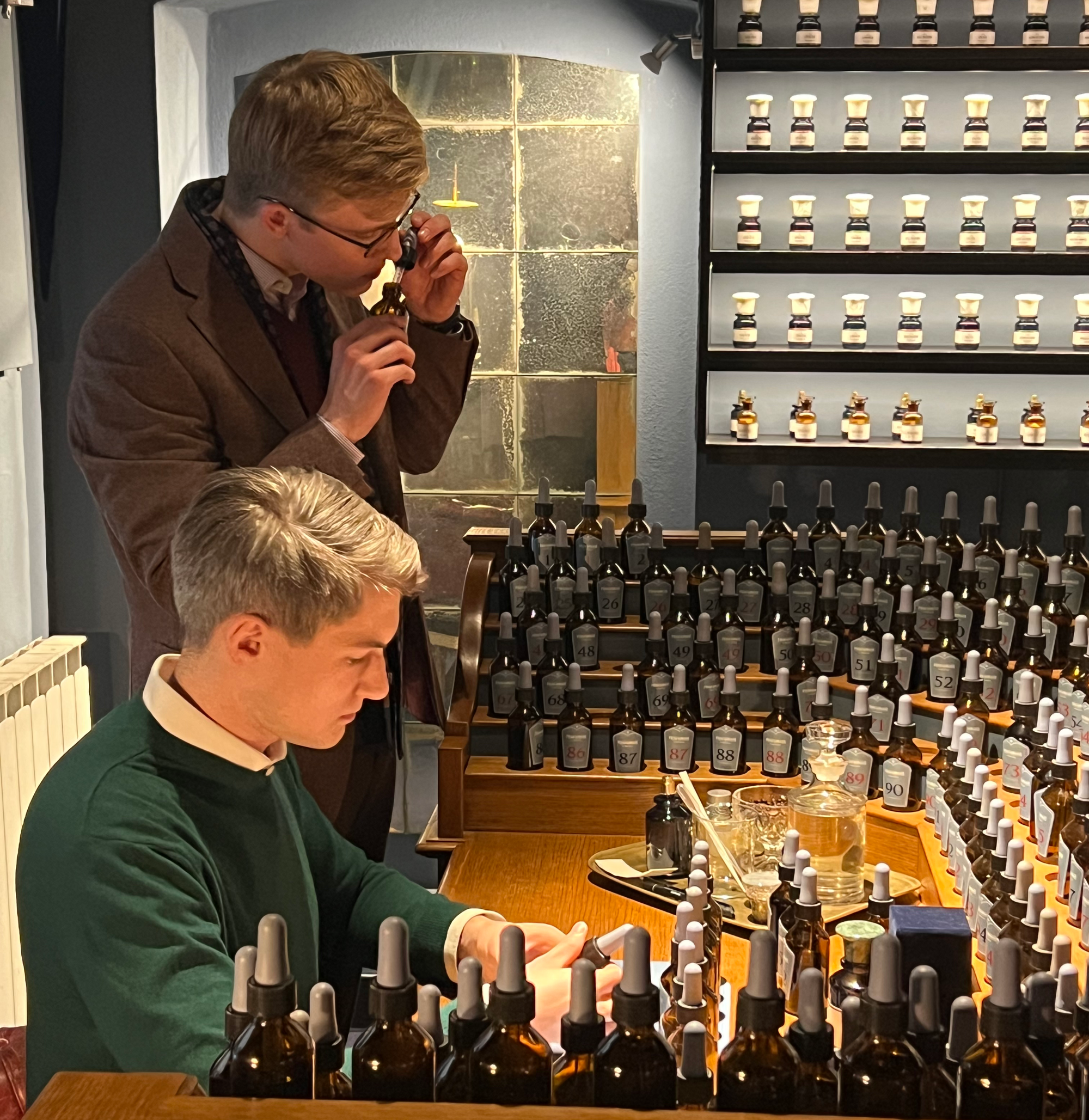 Als mehrjährige Kunden von Profumoir sind wir bereits mit ihrer detailverliebten und emotionalen Handwerkskunst vertraut. Tatsächlich hatten wir schon zuvor die Gelegenheit, ein maßgemachtes Parfum zu kreieren. Doch während unseres Besuchs in Florenz, anlässlich der Vorbereitungen für die Pitti Uomo, beschlossen wir, erneut die Magie eines maßgemachten Parfums zu erleben, dieses Mal als gemeinsam kreierter Teamduft.