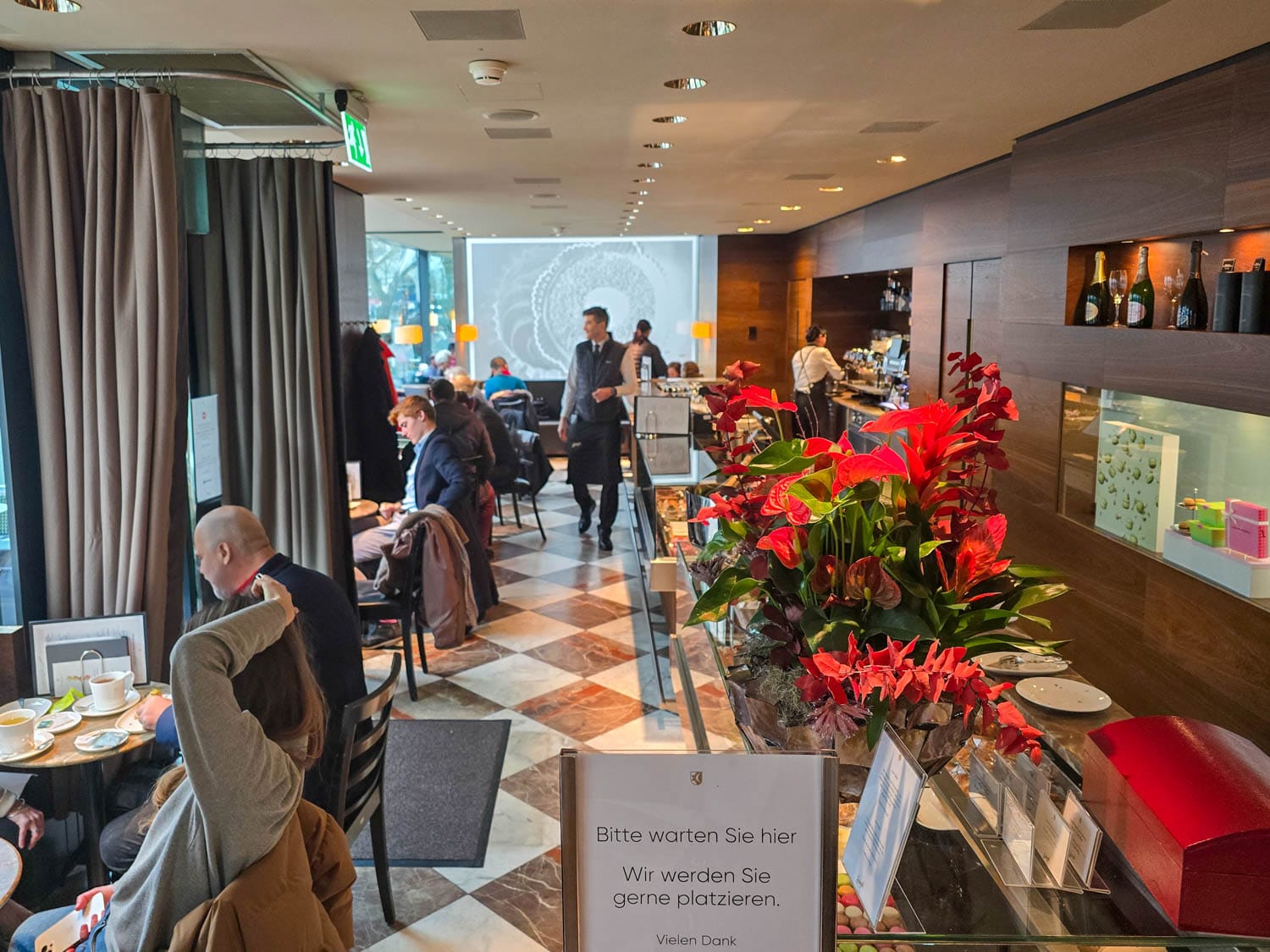 Ein Besuch in einer guten Schweizer Confisserie oder Konditorei ist ein besonderes Erlebnis. In der Confiserie Sprüngli wird dieser Genuss auf höchstem Niveau zelebriert. Egal ob ein traditionelles Stück Kuchen, ein perfektes Törtchen oder eine zartschmelzende Schokoladenspezialität – hier kommt jeder Liebhaber von feinen Süssigkeiten auf seine Kosten. Besonders beliebt sind Klassiker wie die hausgemachte Sprünglitorte, luftige Rahmschnitten, der intensiv schokoladige Truffes-Cake oder der berühmte Apfelstrudel – allesamt hergestellt aus feinsten Zutaten und nach bewährten Rezepten. Das Matterhörnchen, das leider aus dem Sortiment genommen wurde, wird schmerzlich vermisst. In den Wintermonaten empfehlen wir, die vielfältigen Vermicelle-Kreationen zu probieren – und unserer Meinung nach bietet Sprüngli die weltbesten Marrons glacés. Traditionell wird eine perfekt harmonierende Kaffeespezialität oder eine köstliche heiße Schokolade serviert – auf Wunsch mit Sahne oder (unser Geheimtipp) mit Schokoladensahne. Wer es lieber erfrischend kühl mag, dem empfehlen wir den hervorragenden hausgemachten Eistee. Übrigens: Die Schweizer gelten als Weltmeister im Eistee-Trinken. Für einen authentischen Schweizer Znüni oder Zvieri – die Schweizer Variante der Morgen- oder Nachmittagspause – bietet Sprüngli eine erlesene Auswahl an süßen Köstlichkeiten, frischen Sandwiches, knackigen Salaten und feinen Gebäckspezialitäten, die jeden Besuch zu einem genussvollen Erlebnis machen. Zum Z’Mittag bietet Sprüngli eine abwechslungsreiche Lunch-Karte mit beliebten Klassikern und neuen Kreationen – perfekt für eine genussvolle Mittagspause im Herzen von Zürichs Kreis 1.